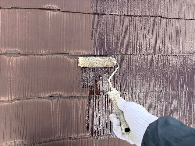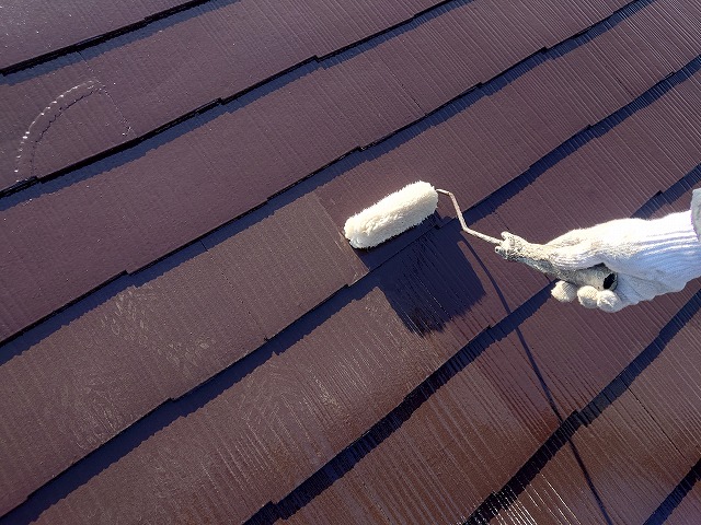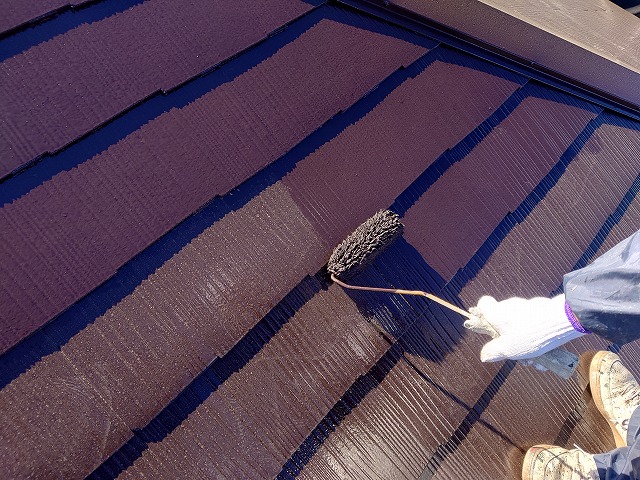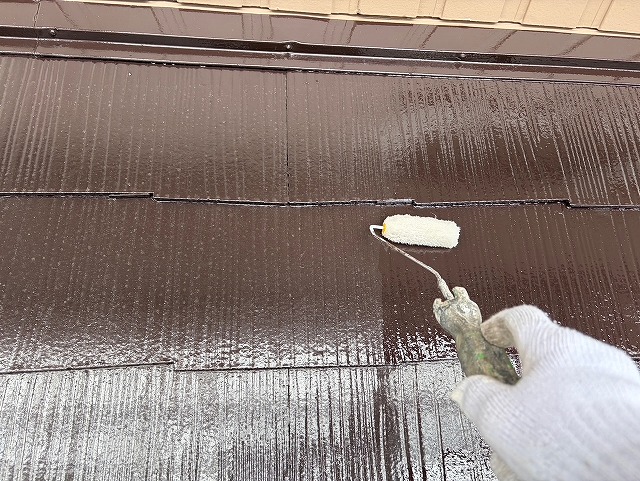 本日は、屋根の上塗り1回目や外壁サイディング目地の既存シーリング撤去などを行いました。