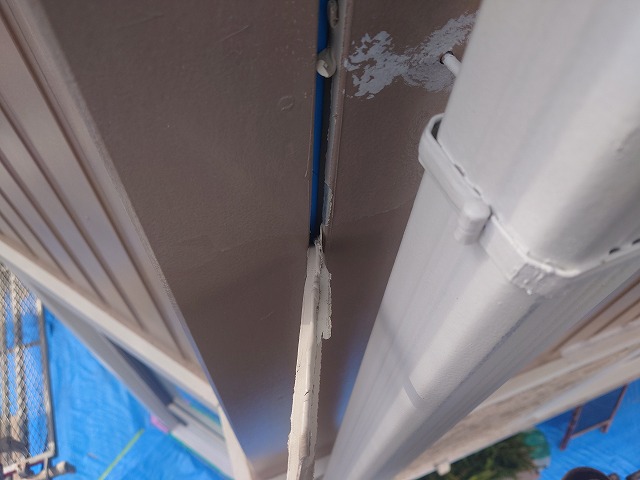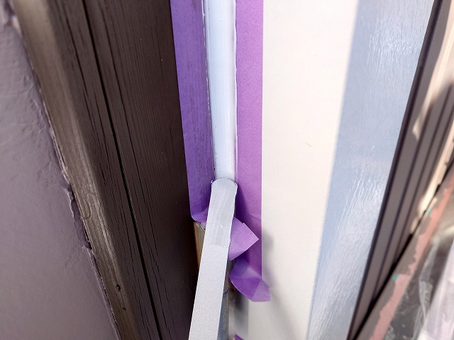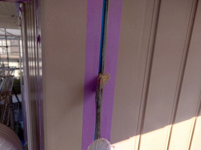本日は、外壁サイディング目地の新規シーリング打ち均し用の養生や新規シーリング打ち均しを行いました。