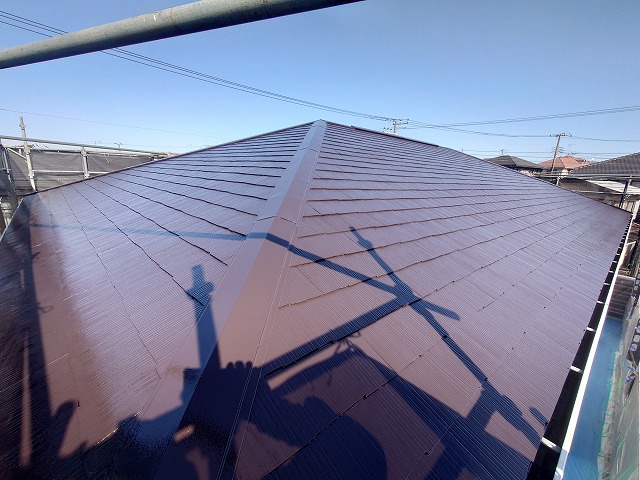 本日は、下屋根の上塗り2回目や手直し、清掃などを行いました。