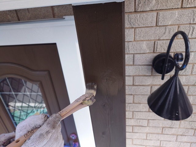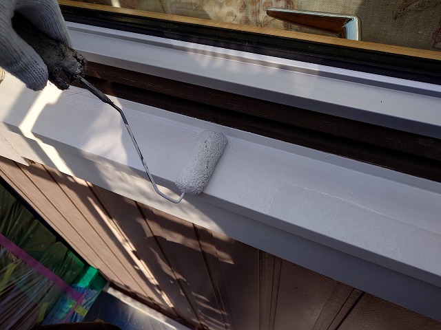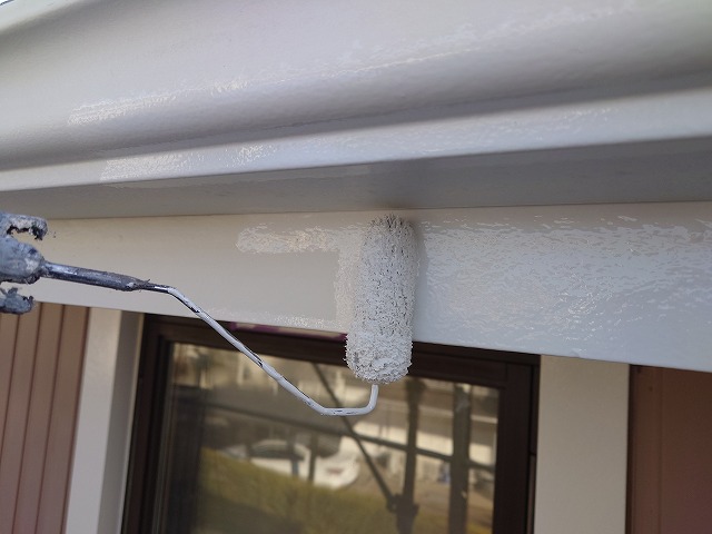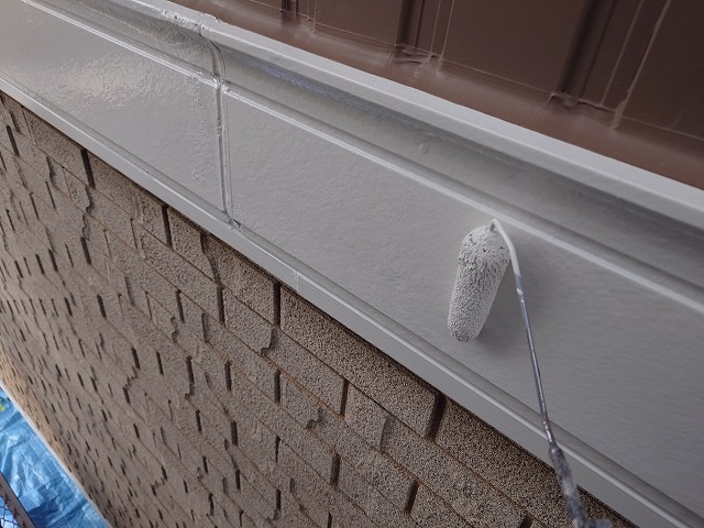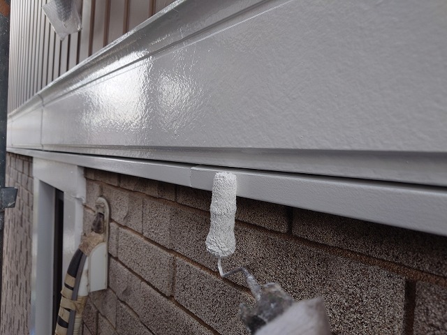 写真は、鼻隠し(破風板)の上塗り2回目です。