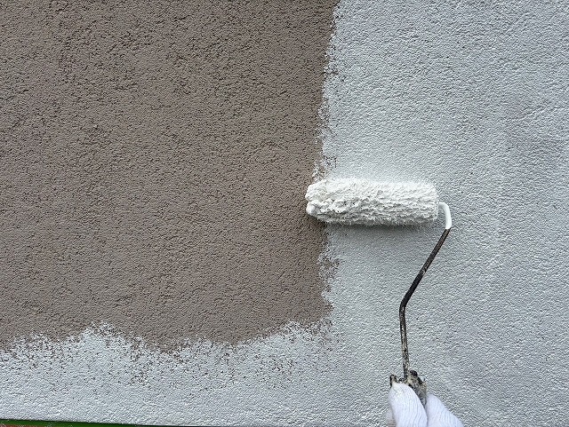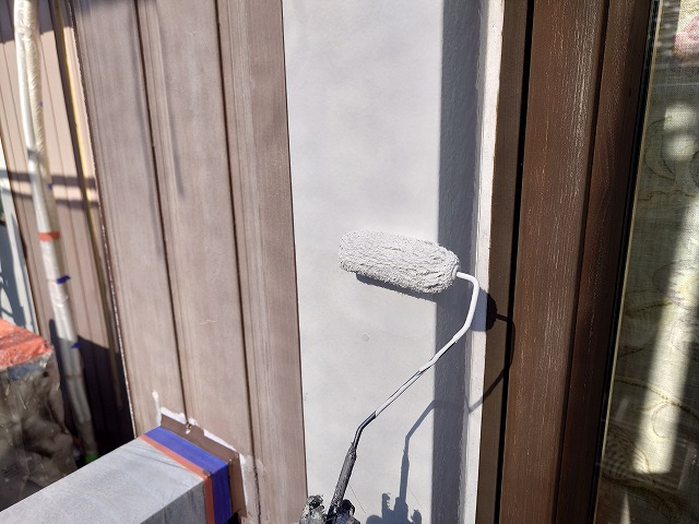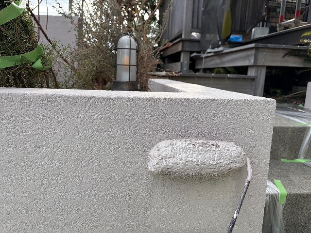 外塀の上塗り2回目です。(※上塗り1回目の写真は撮り忘れてしまいました。。。)