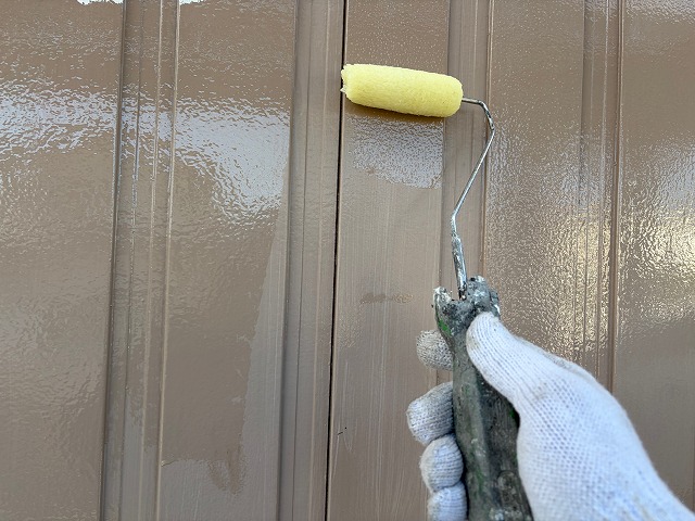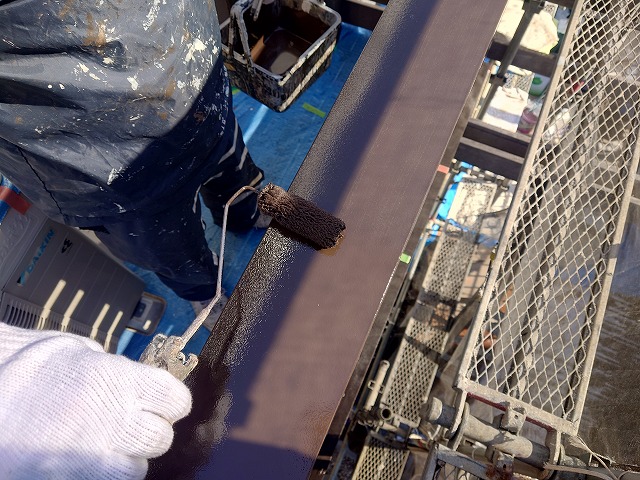 写真は、棟包みと呼ばれる屋根板金の上塗り2回目です。