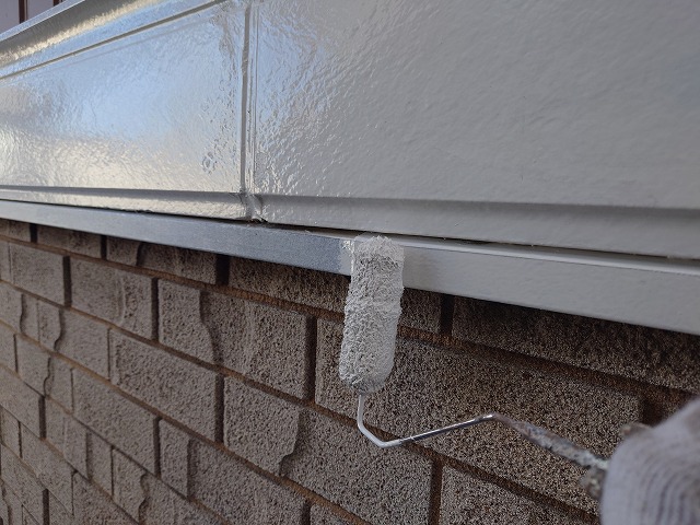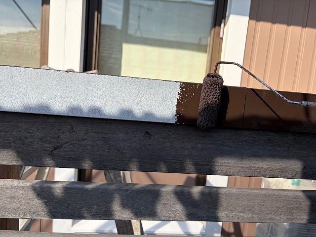 唐草と呼ばれる軒先水切り板金の上塗り1回目です。