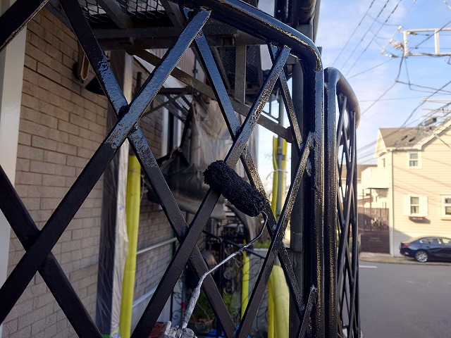 本日は、化粧幕板などの新規シーリング打ち均しや鋼製フェンスのサビ止め塗装などを行いました。