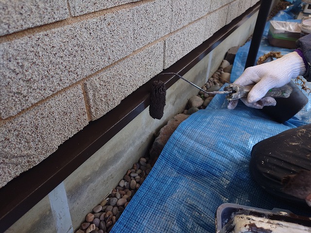 唐草と呼ばれる軒先水切り板金のサビ止め塗装です。