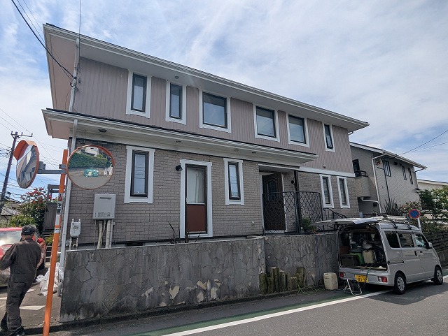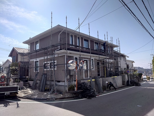 本日より、Y様邸の塗装工事が始まりました。お客様並びにご近隣の皆様には、しばらくの間、何かとご不便をお掛けすることと存じますが、ご理解とご協力のほどをなにとぞよろしくお願い申し上げます。