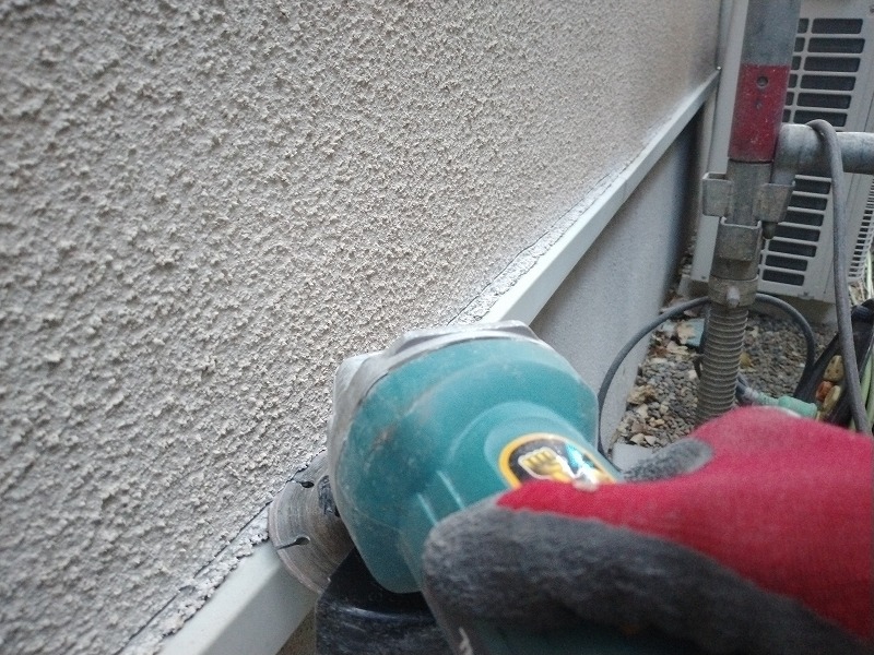 本日は土台水切りにぴったりと乗ってしまっている外壁のカットを行いました。