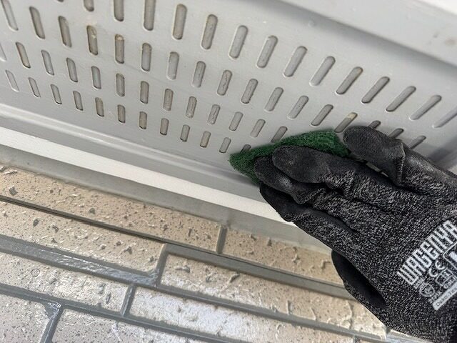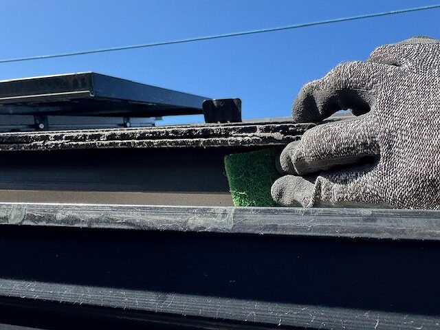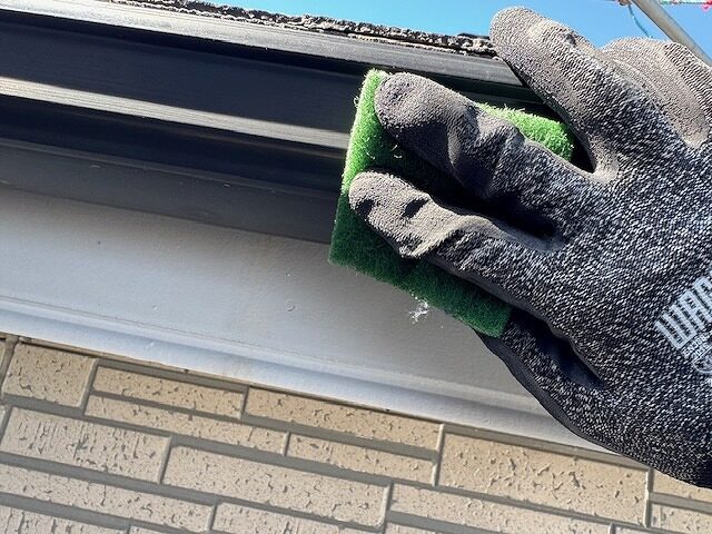 唐草と呼ばれる屋根先水切り板金の洗浄です。