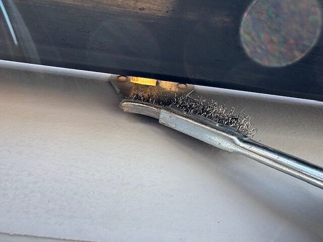 本日はケレンの続きやさび止め塗装、既存シーリングの撤去などを行いました。