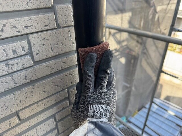 本日は配線・配管の取り外しの続きや鉄部や樋などのケレン(目荒らし及びさび落とし等)を行いました。