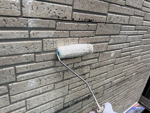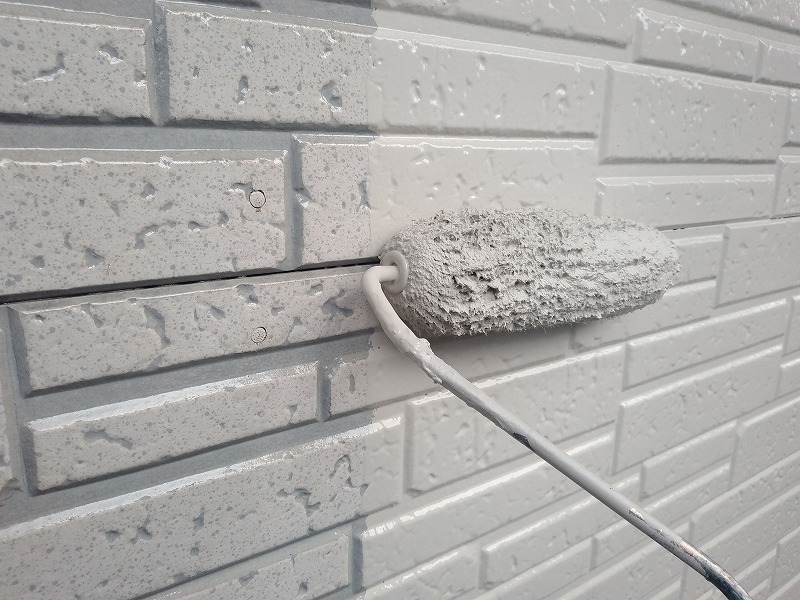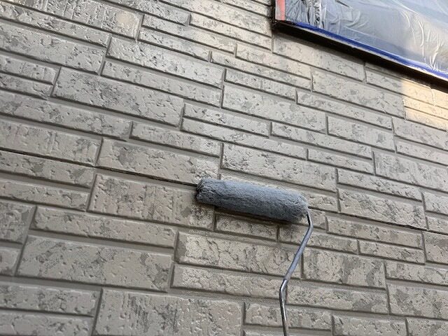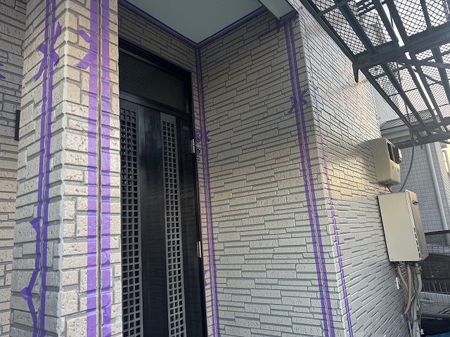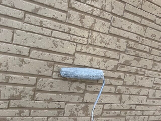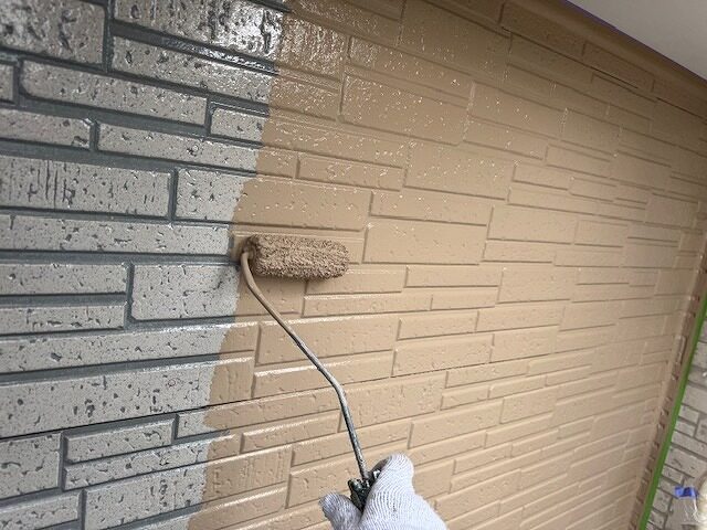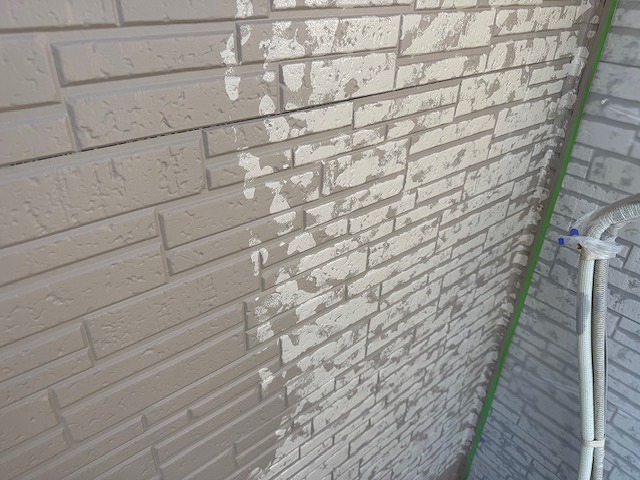 本日は外壁の模様付けや色替え部分の塗装などを行いました。